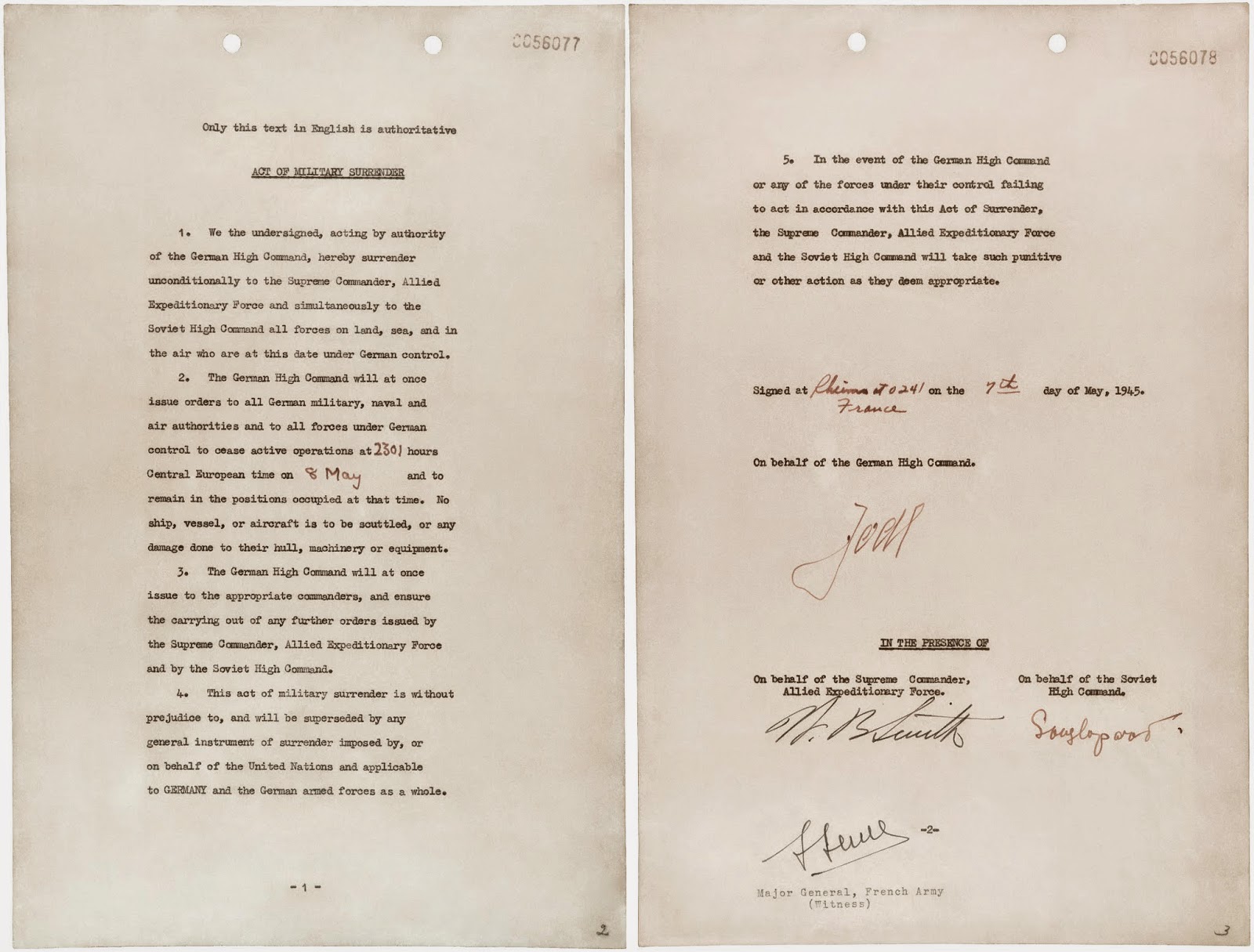 Ето снимка на оригиналният документ от капитулацията на Германия, подписана от Германия, съюзниците, СССР и Франция.